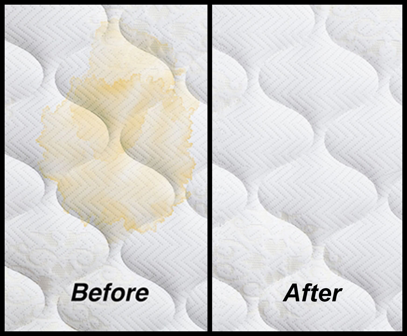 This happy customer sent us these before and after pictures of their results removing a urine stain from their mattress.